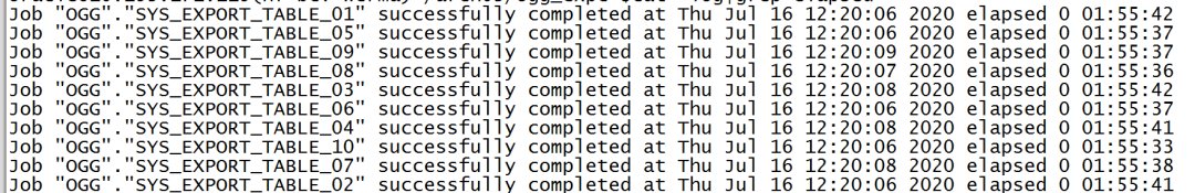 将参数文件复制并修改取模的余数值,分为十个进程并发执行。查看全部导出日志,每个批次耗时相差不大,满足均匀分批导出的计划。