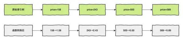 WHERE FLOOR(price/100)*100 = 500 -- 破坏索引有序性