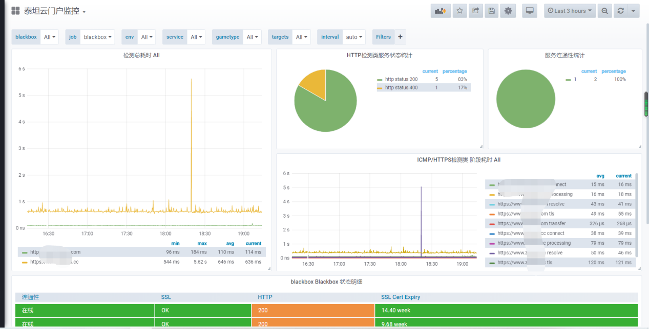 1、首先看下我们这边的相关图表,门户多项指标与ssl监控