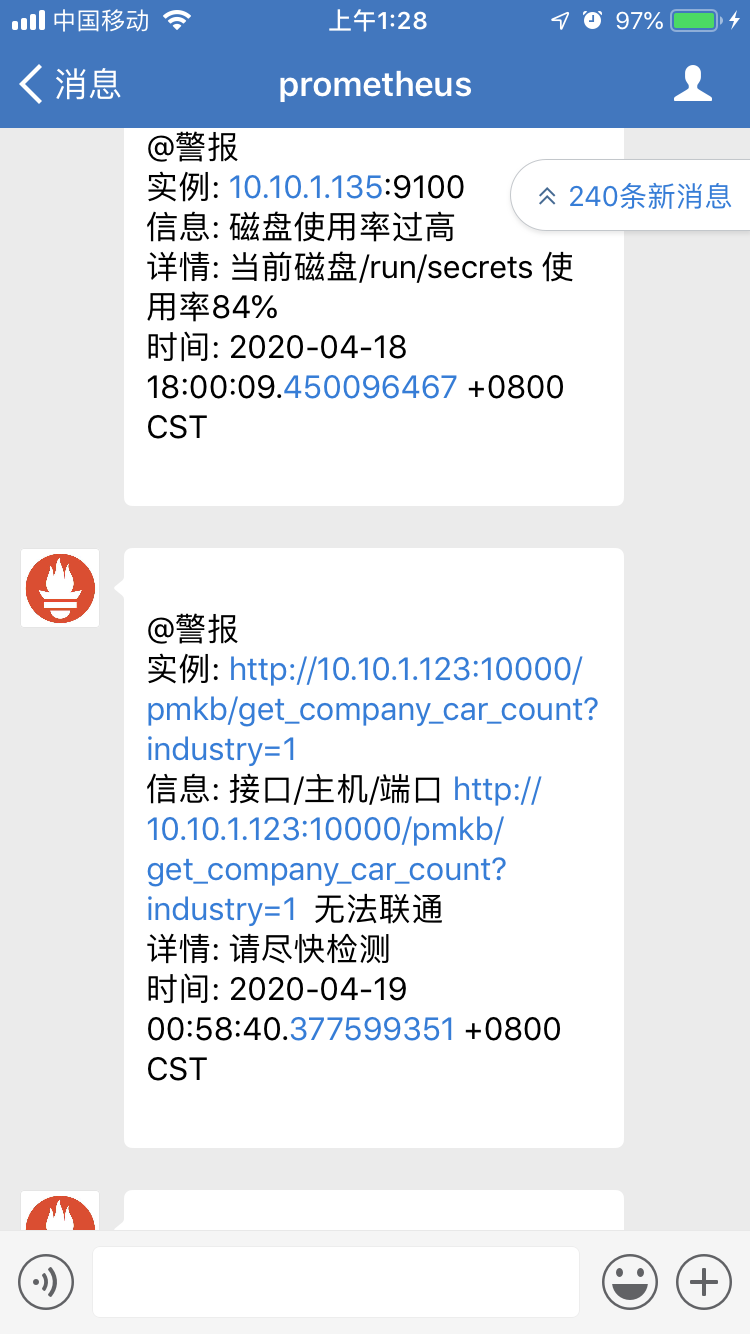 5、我们发现有个接口已经存在问题,这个时候我们也收到了一条相应的微信告警