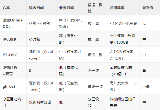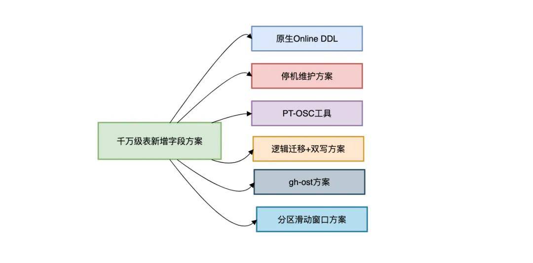 以下是针对千万级MySQL表新增字段的6种方案的对比。
