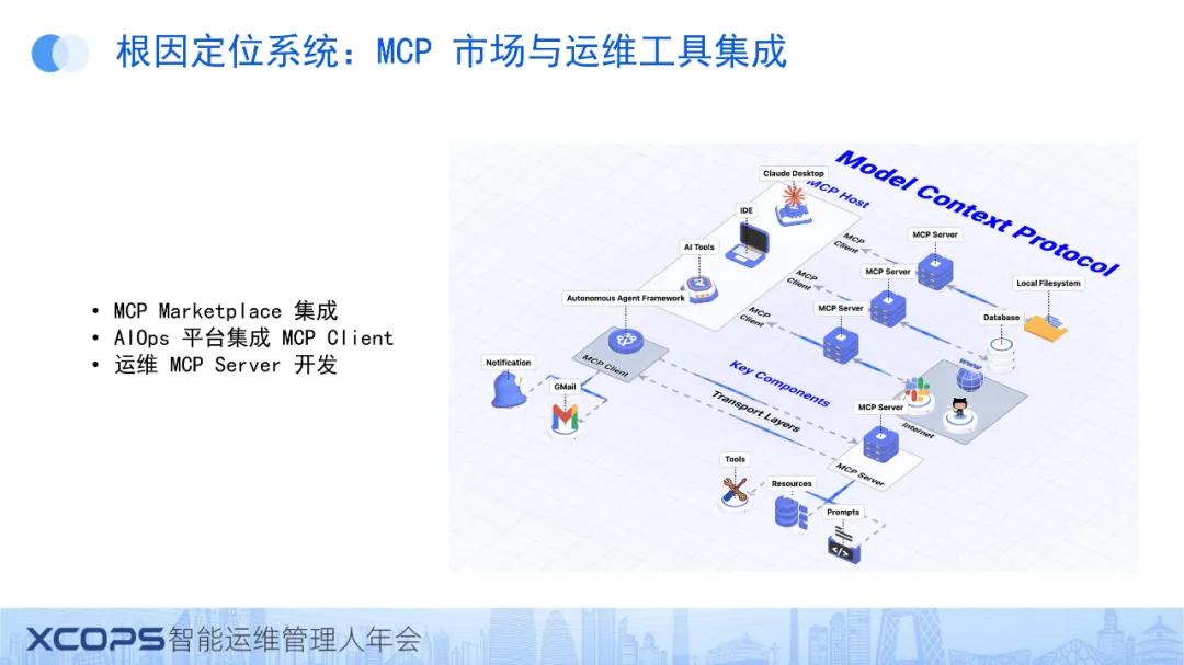 顺丰搭建了自己的MCP市场,其中AIOps运维工具会集成MCP开发能力,同时开发运维工具MAC Server。技术组件或运维平台开发者可封装大量运维接口,封装后所有算法和智能体通过MCP统一协议进行对照对接。