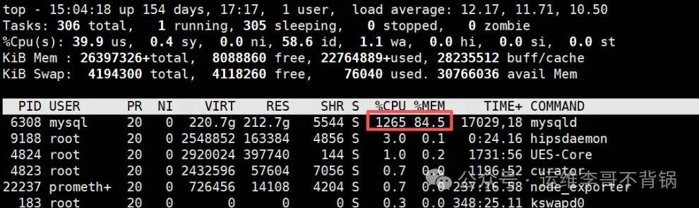但这恰恰是对 top 的第一个误解。上面截图中,MySQL服务多少有点问题,但业务并没有受影响。