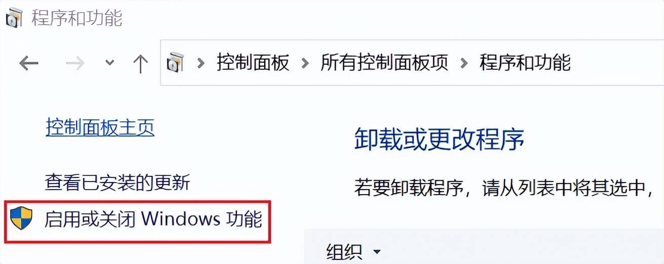 打开 控制面板 > 程序和功能 > 启用或关闭 Windows 功能。