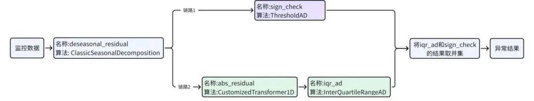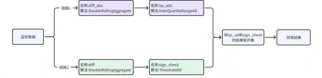 b. 异常分析:异常分析通过由两条检测链路进行检测,然后取两个链路结果交集。