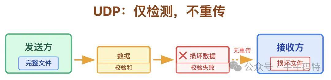 的确如此,但 UDP 的校验和仅具备错误检测能力,并无自动重传机制。要是应用层没做额外校验,很可能导致附件损坏,接收方只能无奈反馈 “文件无法打开,请重新发送”,这么一来一回,反而比 TCP 慢得多。