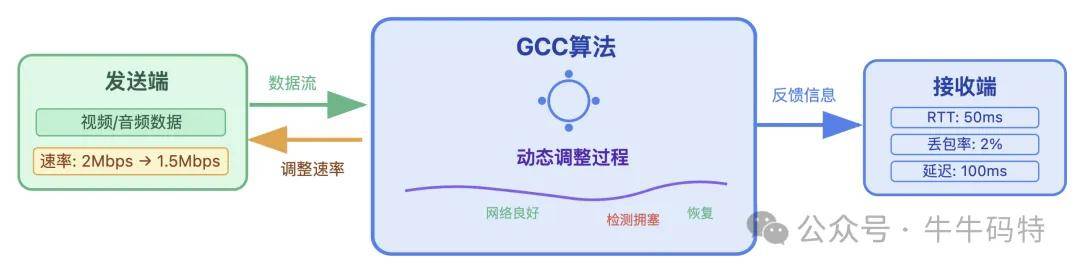 但 UDP 这份 “全速冲刺” 的自由也有代价:当多个 UDP 数据流同时抢占带宽时,很容易因为 “抢道” 引发数据丢包。因此,基于 UDP 的新一代网络应用,通常会在应用层实现 “伪拥塞控制” — 例如 WebRTC 的 GCC 算法,以此来平衡速度与稳定。