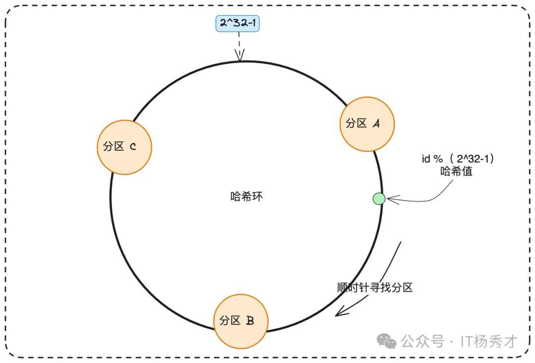 一致性哈希算法是解决分布式系统中负载均衡问题的经典利器。我们可以将所有分区节点想象成分布在一个0到2^32-1的哈希环上。当一条消息到来时,计算其业务键的哈希值,然后在环上顺时针寻找第一个遇到的分区节点,作为其目标分区。