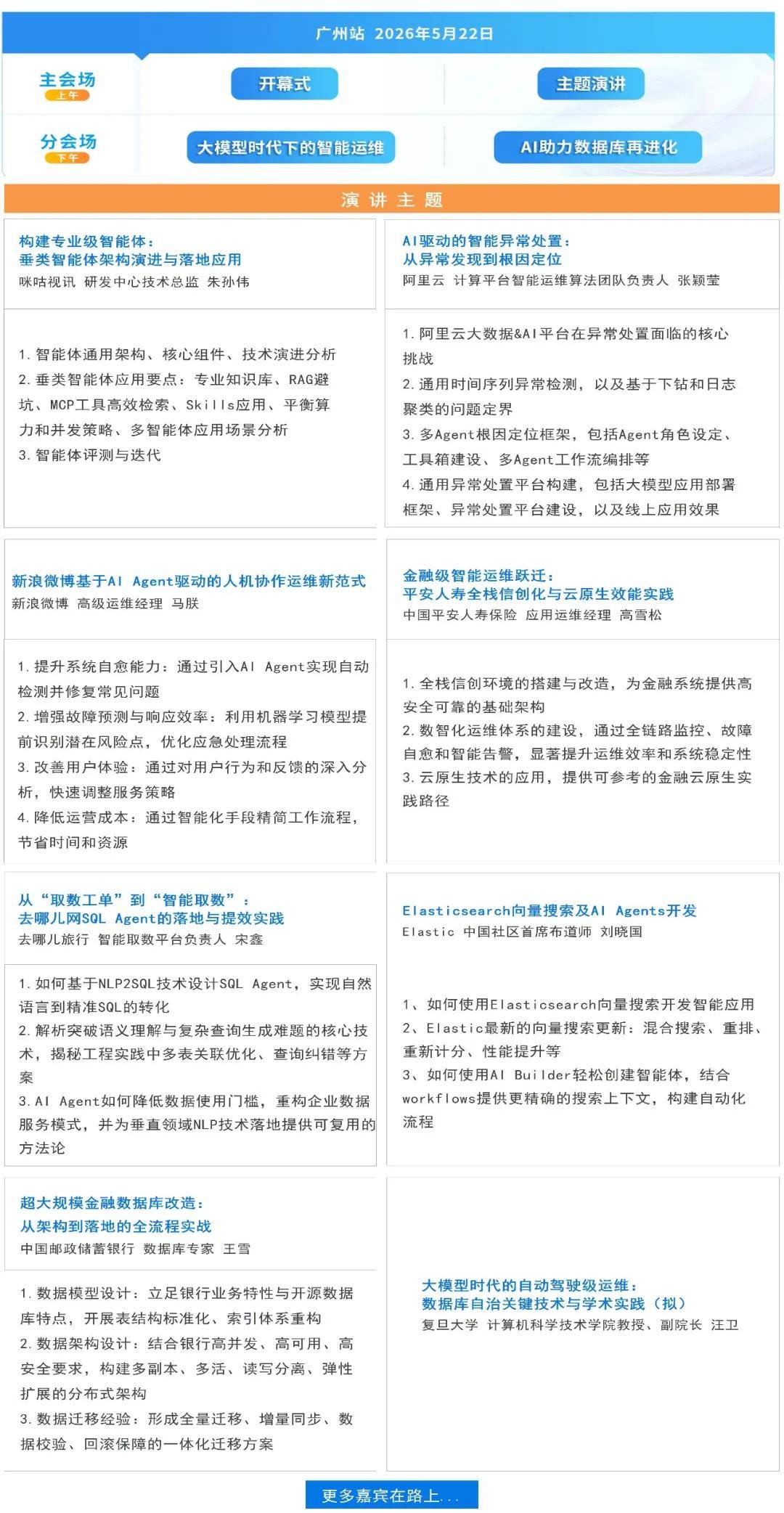 以上议题将会在2026 XCOPS智能运维管理人年会-广州站完整呈现,更多互联网大厂及金融代表企业在“垂类Agent应用与人机协作模态”、“数据库自治与底层技术演进”、“金融核心改造与安全效能双升级”等方向上的最新研究与最佳实践,都可以在5月22日的XCOPS广州站一次性看全。