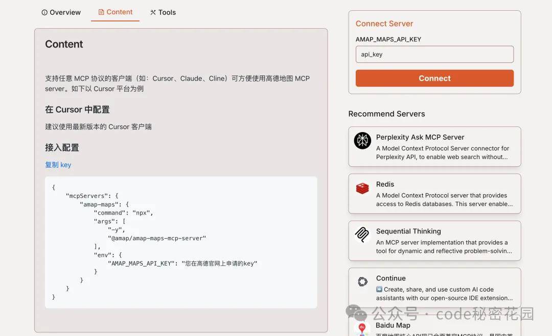 让大模型能够调用三方平台暴露的 API,如 高德地图 MCP Server。