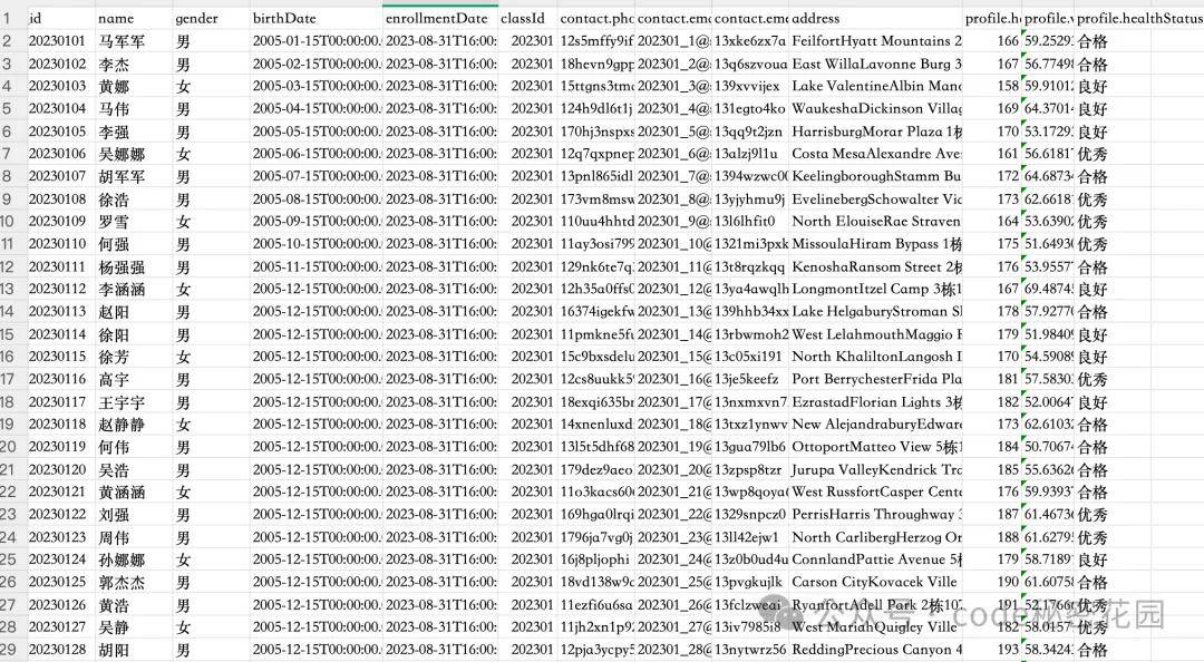 下面,我们将介绍一个新的方案,通过 MCP + 数据库来提高结构化数据的检索精准度,基本上能够实现 text to SQL 的效果,实测的检索效果也要比 RAG 好很多,例如我们有这样一份学生列表的信息: