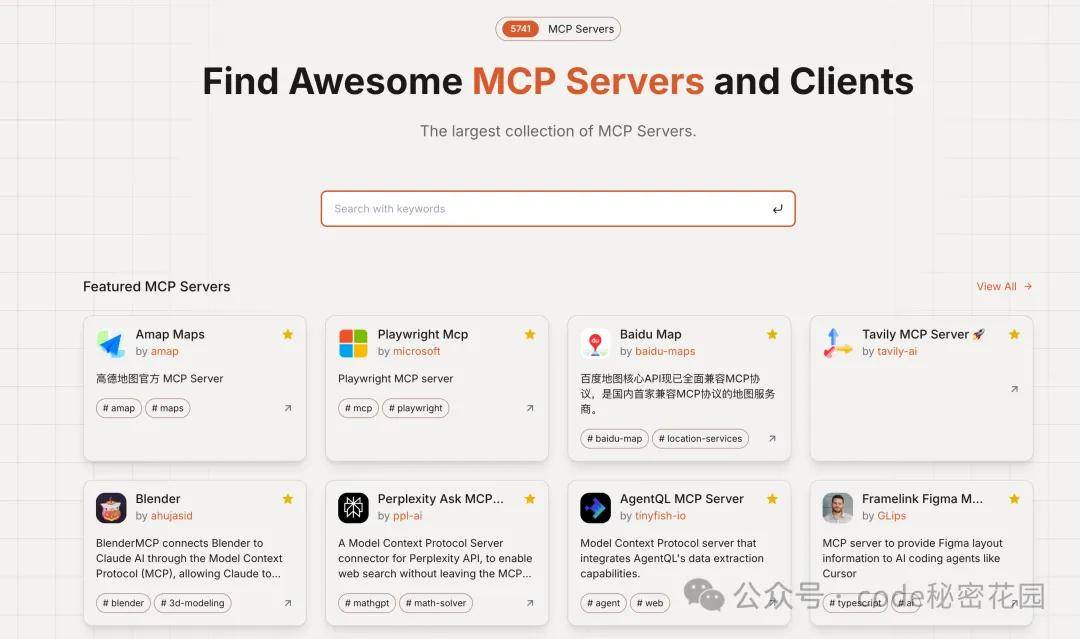 下面是一些可以查找到你需要的 MCP Server 的途径: