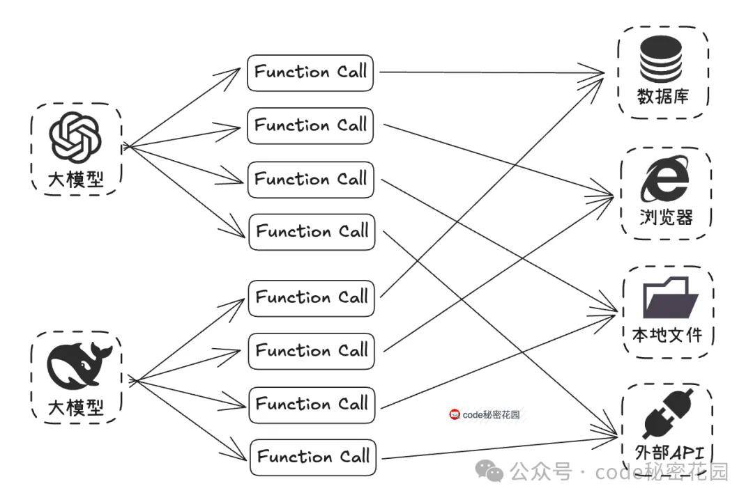 这也就意味着,如果我们要发开一个 Function Call 工具,需要对不同的模型进行适配,比如参数格式、触发逻辑、返回结构等等,这个成本是非常高的。