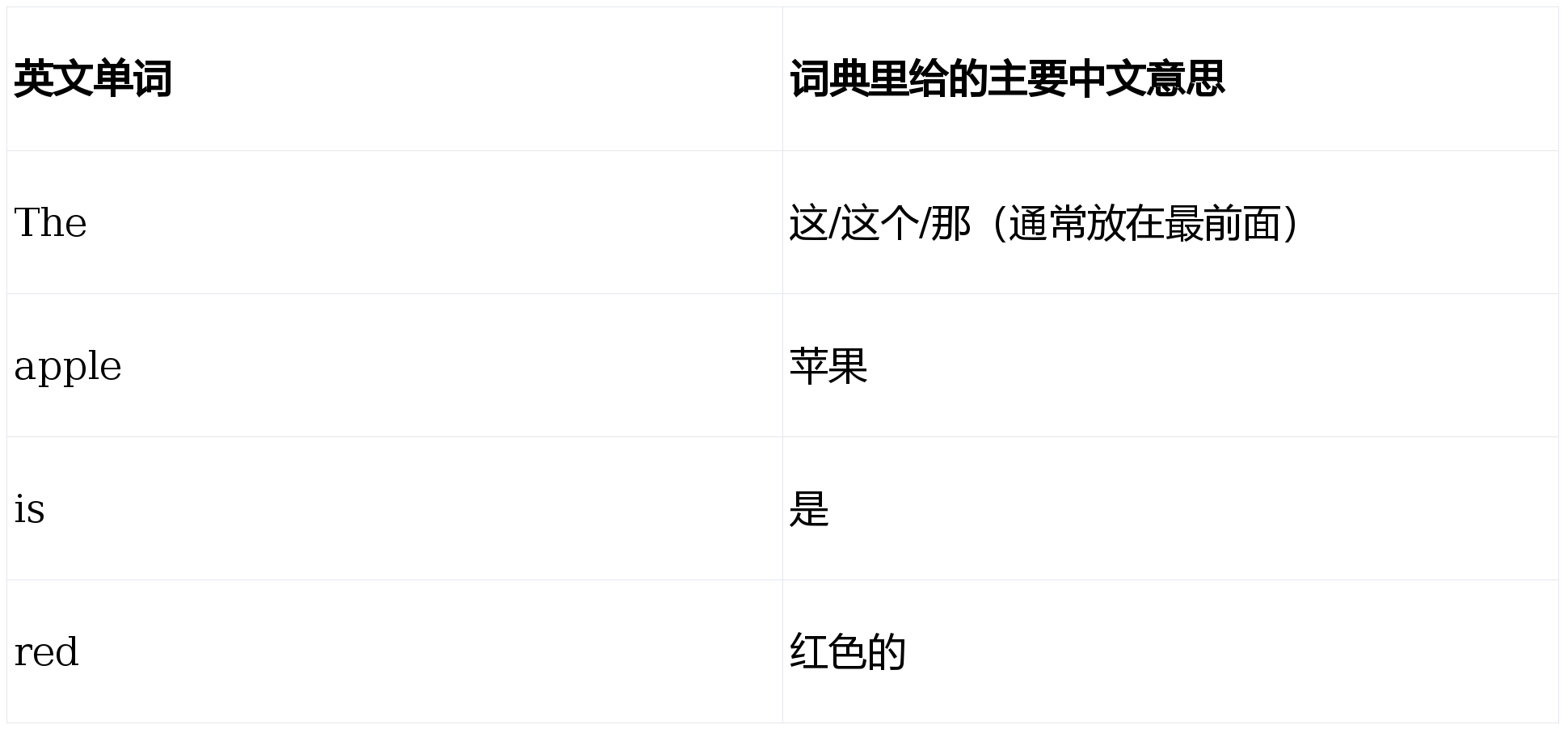 所以,它把这些词按照规则排列起来。 最终翻译结果:这苹果是红色的。